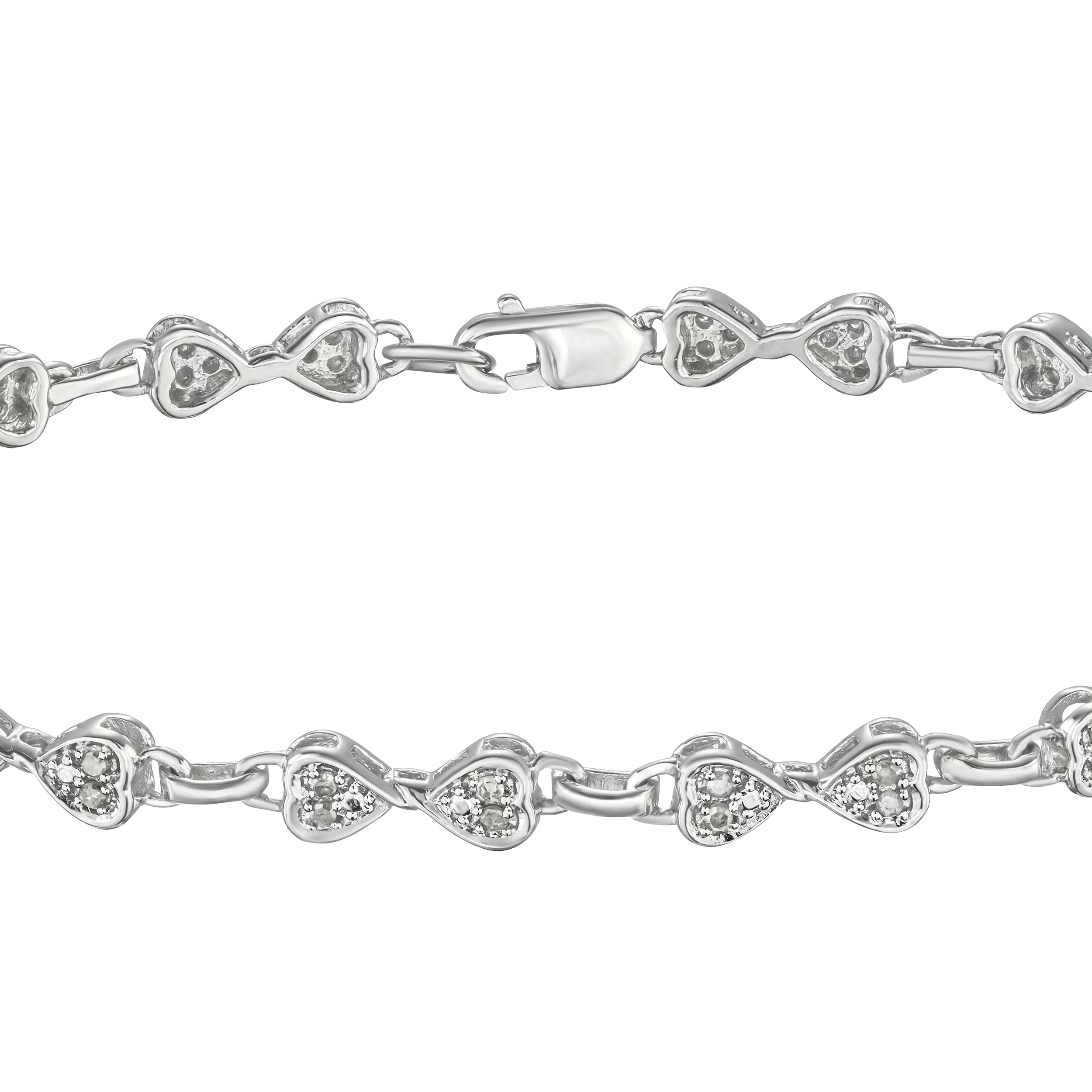 Discover our Diamond Heart Bracelet, with 0.25ct of premium quality diamonds set in the finest silver. The illusion of never-ending hearts is accentuated with pavé diamonds, sparkling with every movement. Worn alone, this diamond heart bracelet is a beautiful evening statement piece. When layered up with other jewellery pieces, this bracelet is perfect for daily wear. The secure clasp ensures the bracelet remains safe and secure on the wrist. Mark a milestone, or gift yourself your new favourite jewellery piece, with this romantic diamond heart bracelet.