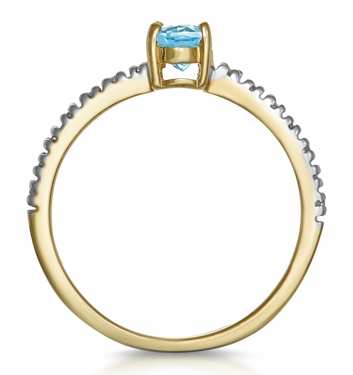Aquamarine 0.35CT And Diamond 9K Yellow Gold Ring