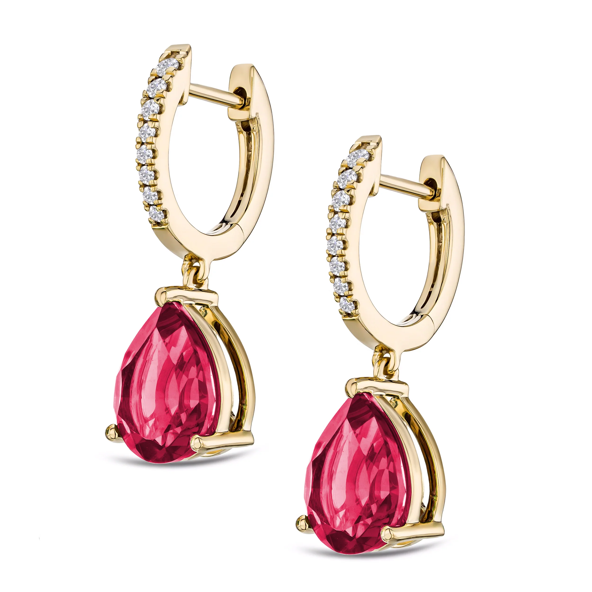 Astra 6.80ct Lab Ruby and Diamond Drop Pear Cut Earrings in 18K Gold Vermeil