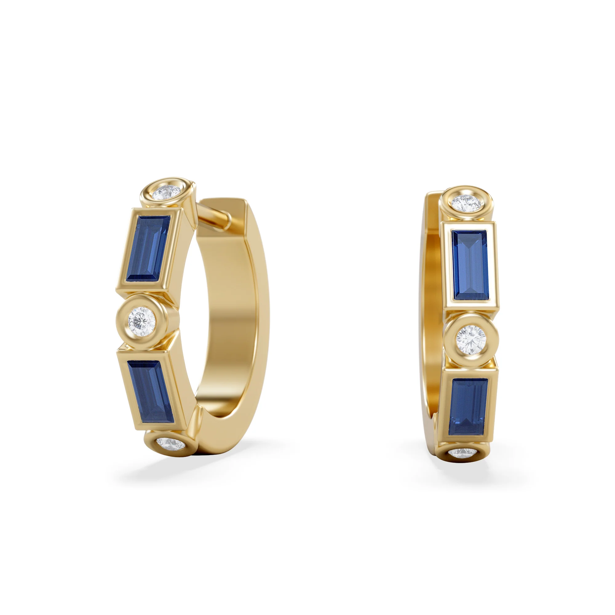 Discover our Sapphire Earrings, featuring 0.52ct of deep blue lab-grown sapphires and 0.08ct of shining lab-grown diamonds, set in the finest gold vermeil. Inspired by Art Deco elegance, these huggies alternate sapphires and diamonds for sparkle with every movement. The sapphires make this piece especially meaningful for September birthdays, as the stone’s birth month significance adds sentimental value. Crafted from recycled materials and ethical, lab-grown stones, these hoops offer timeless beauty with a sustainable edge. Pair them with our matching necklace for a sophisticated set.