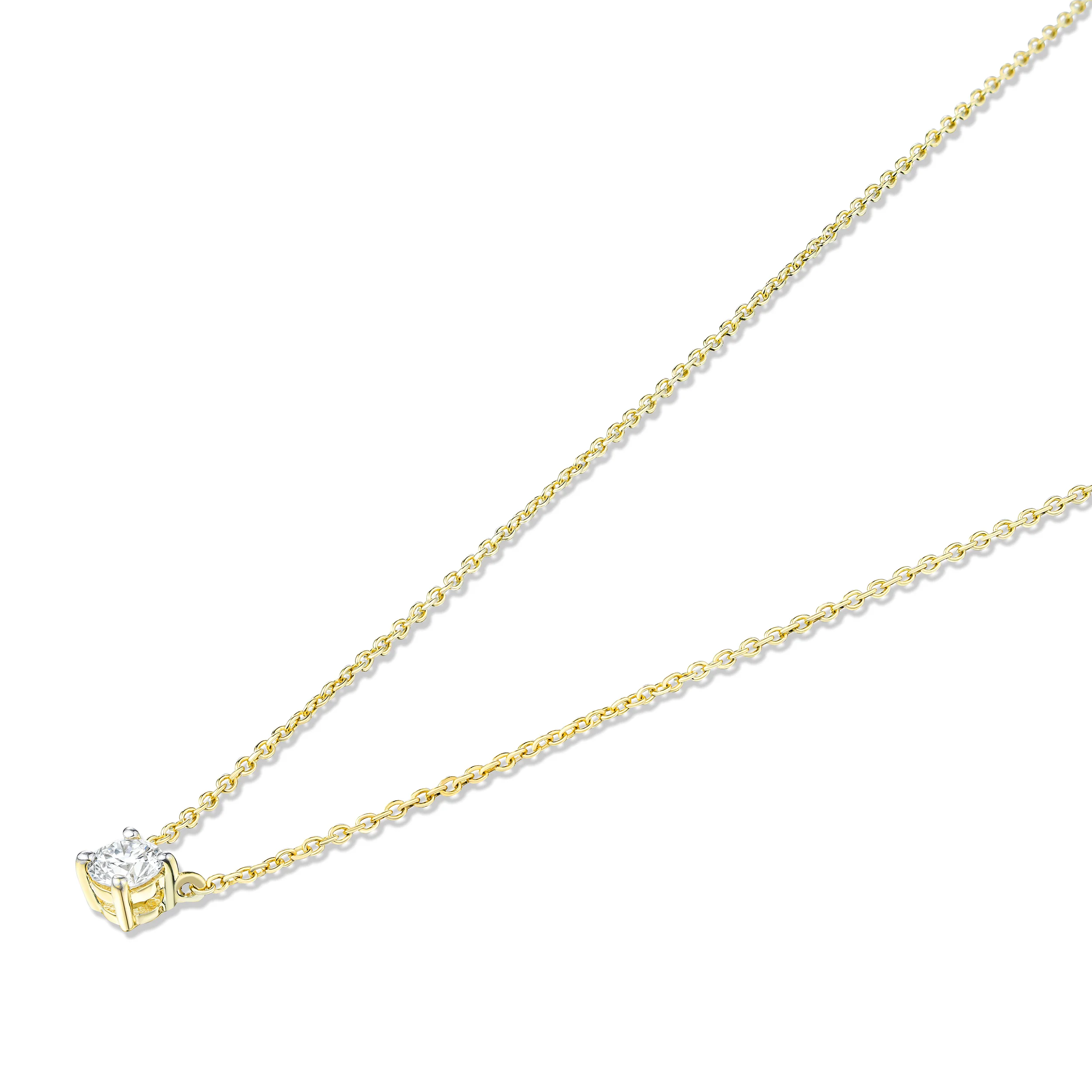 Discover our Wanderlust Floating Round Diamond Solitaire Pendant Necklace, featuring a 0.25ct lab-grown diamond, suspended from a fine yellow gold vermeil chain. This necklace is a modern taken on a classic pendant necklace, with the suspension hidden behind the diamond, giving the stone the illusion of ‘floating’ on the neckline. The round diamond delicately sits on the collar, creating beautiful sparkle with every movement. Due to this necklace’s simplicity, it’s perfect for daily wear, but can equally be saved to complement special occasion outfits. The ideal gift for birthdays, weddings and occasions, this floating solitaire necklace will be loved for years to come.